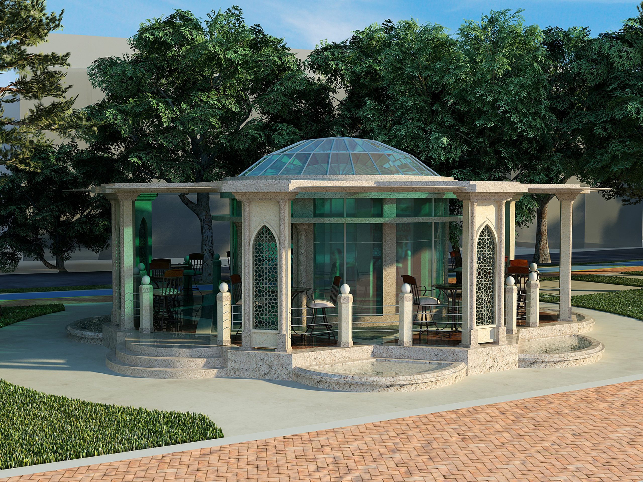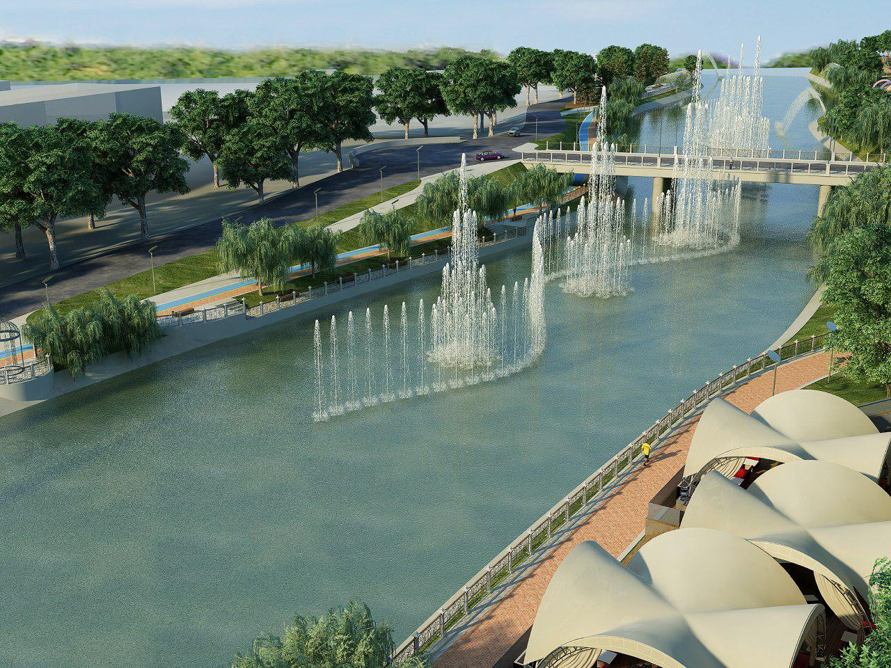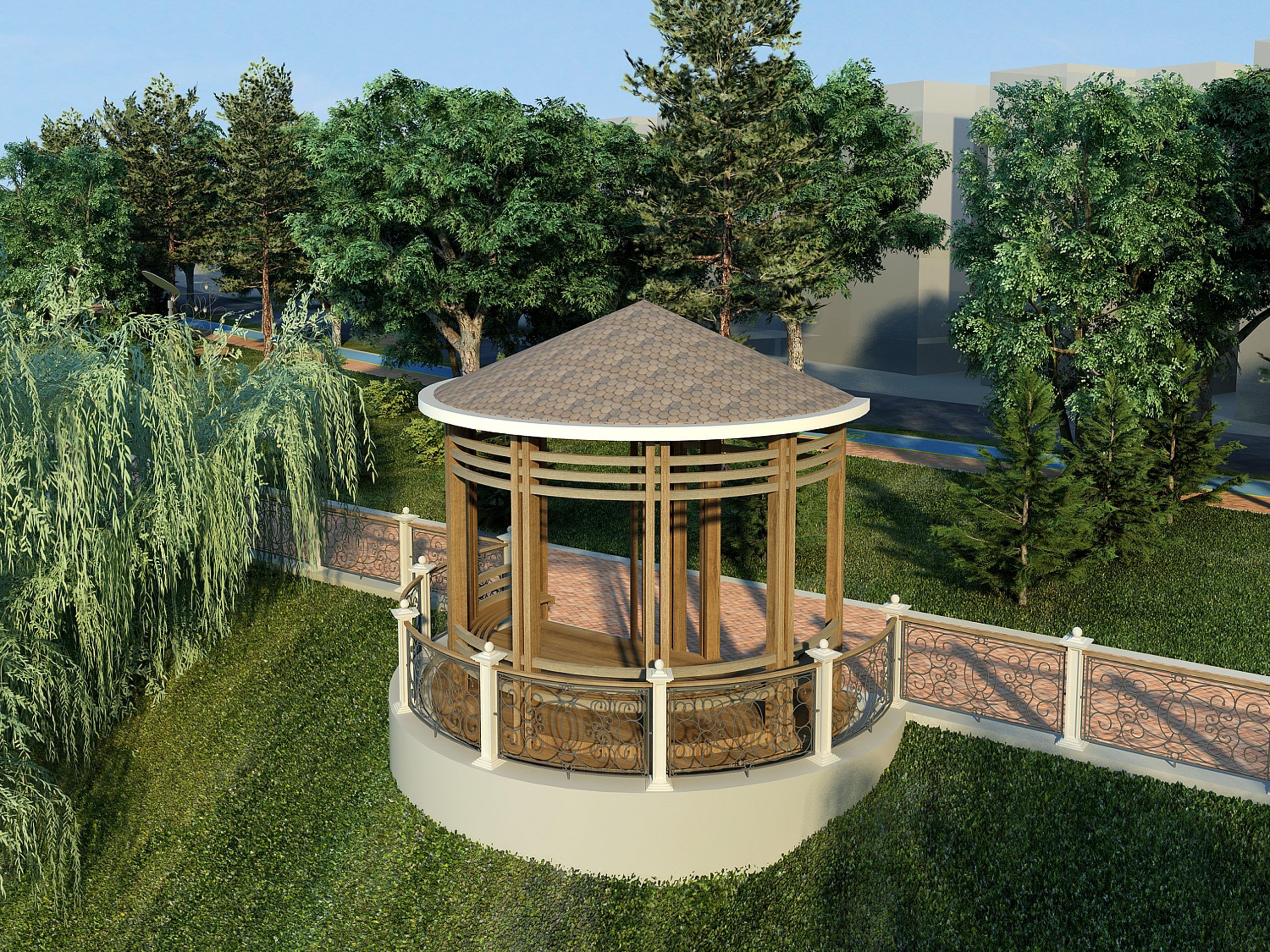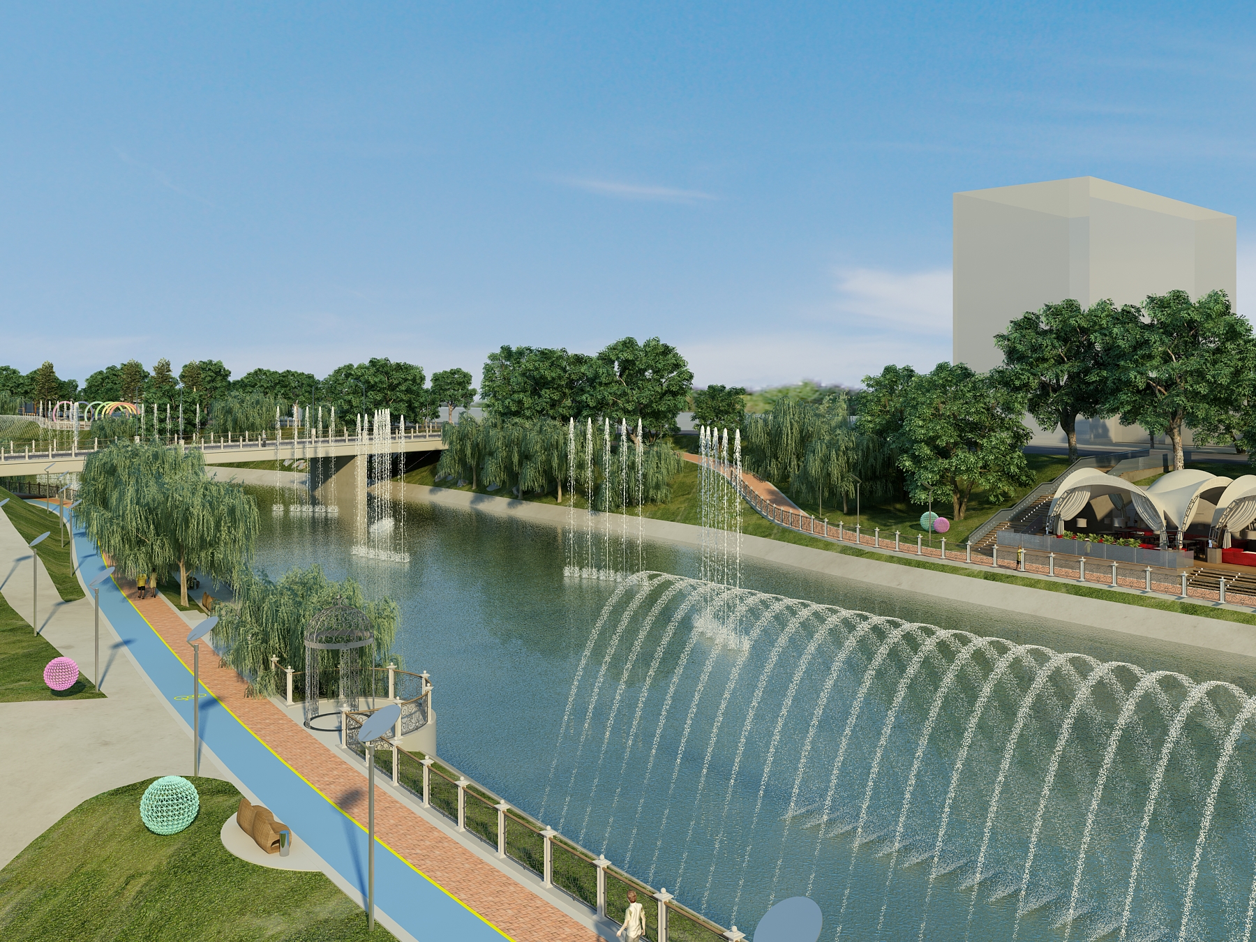 Бюро разработало концепцию благоустройства, включающую архитектурно-планировочное решение, ландшафтный дизайн, малые архитектурные формы и систему освещения. Особое внимание уделено интеграции природных элементов, озеленению и использованию устойчивых материалов. Проект основан на принципах экологичного подхода, рационального использования пространства и визуальной целостности.